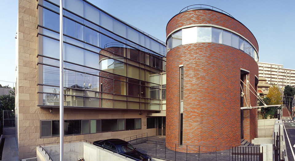 The building of the new Polish embassy is situated in the Meguro-ku district, where it is surrounded by low residential buildings. The small plot required development fitting the dimensions and shape of the building to the scale of the narrow street and leaving as much open public space in front of the building as possible. At the same time, the building needed official character, although not ostentatious. The functions of the embassy were divided into office and formal, ones that can be situated under and over the ground. The public and representational zone was situated in the oval building in front (providing space for the main entrance, reading room, the foyer, the multifunctional hall, and the meeting room). The back office was situated in the trapezoid building situated in the back of the plot. The underground part houses the automated car park and a multifunctional hall with a two-storey foyer, fronted with a bamboo garden designed in a hollow of the ground.